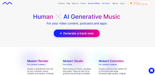 - Integration Capabilities: Easily embed Mubert’s AI-generated music into videos, games, and other platforms.