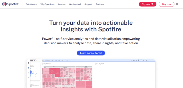 TIBCO Spotfire is a cutting-edge data analytics and visualization platform known for its advanced analytics capabilities. Aimed at individuals who need to quickly derive insights from their data, it’s adept at turning raw information into actionable knowledge.