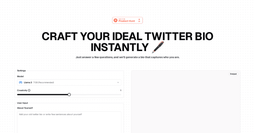 BioIt is an innovative solution for anyone who wants to create a standout Twitter bio quickly and effectively. Simply answer a few questions about yourself, and let BioIt’s AI do the work for you! You’ll have a personalized bio in no time, making your profile not only eye-catching but also a true reflection of who you are. The user-friendly interface makes navigating through the form a breeze, even for those who aren’t tech-savvy. Personally, I found it delightful how the tool adapts to my input, allowing me to customize elements like tone and creativity, which adds a personal touch to the generated bio.