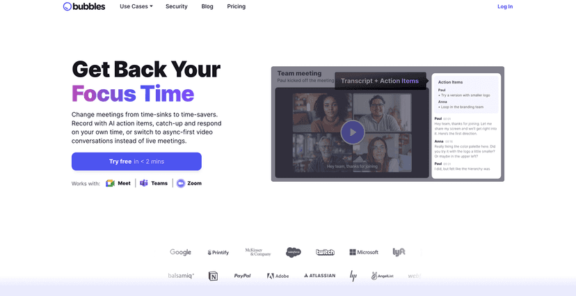 In conclusion, Bubbles Notetaker is an innovative solution for transforming meetings into streamlined, productive sessions. Whether you’re looking to enhance collaboration or simply save time, Bubbles has got you covered. With its user-friendly interface and powerful AI capabilities, it could be just what you need to optimize your work meetings. So why not give the free trial a try and see how Bubbles can make a difference in your routine?