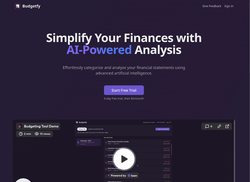 Budgetfy offers a 3-day free trial, after which the subscription costs $5 per month. This pricing structure provides a low-risk way for potential users to test the features and see if it fits their financial needs.
