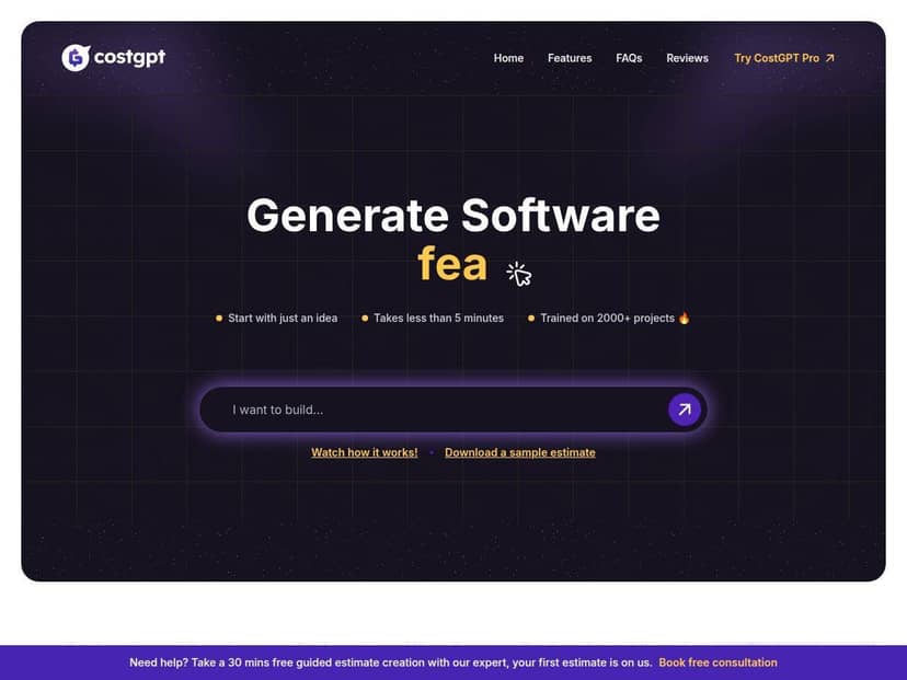 ¿Estás pensando en lanzar un nuevo proyecto de software? Quieres obtener una estimación fiable que te ayude a ahorrar tiempo y dinero. CostGPT AI promete información rápida y precisa sobre el costo del proyecto. En esta revisión, compartiré mi experiencia real con la herramienta, destacando cómo puede ayudar a optimizar tu proceso de planificación. ¿Curioso de saber cómo funciona realmente? Profundicemos en esta visión general amigable de lo que ofrece CostGPT AI y si vale la pena prestarle atención.