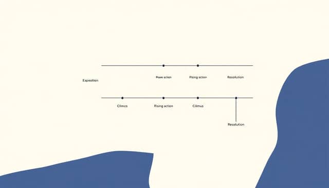 El ejemplo más común de estructura narrativa que reconocerías es el diagrama de trama clásico que a menudo se enseña en la escuela, que incluye exposición, acción ascendente, clímax, acción descendente y resolución. Usar una estructura como esta hace que tu historia se sienta organizada y mantiene al lector enganchado.