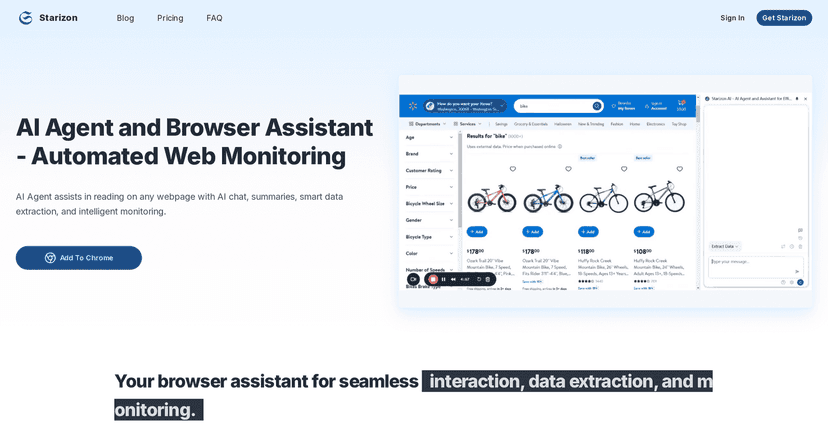 En el mundo digital acelerado de hoy, la eficiencia es clave para el éxito. Starizon AI presenta una solución notable diseñada para optimizar tu experiencia de navegación. Este Agente de IA y Asistente de Navegador promete simplificar la extracción de datos, la resumición y el monitoreo de páginas web. En esta reseña, exploraremos sus características, pros, contras y precios para ayudarte a decidir si es la herramienta adecuada para ti.