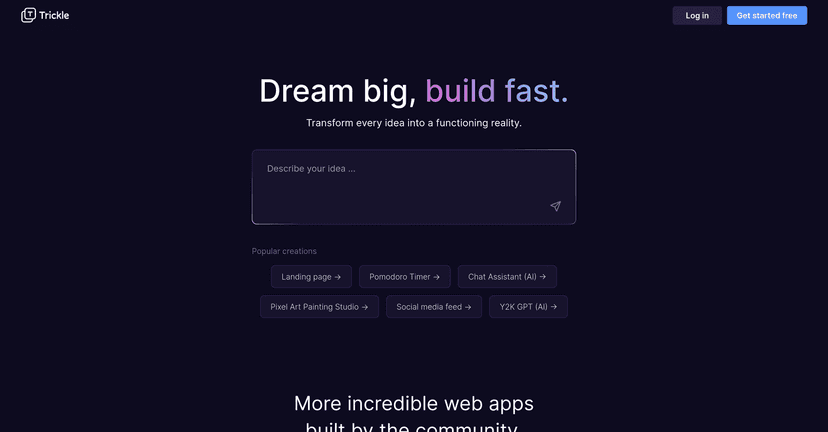 En el mundo acelerado de la tecnología, encontrar formas de simplificar el desarrollo de aplicaciones es un cambio de juego. Presentamos Trickle AI, una herramienta revolucionaria que permite a cualquiera crear aplicaciones web utilizando lenguaje natural e IA, sin necesidad de habilidades de programación. Si alguna vez has soñado con convertir tus ideas en realidad pero te has sentido abrumado por las barreras técnicas, esta plataforma promete cambiar eso. Profundicemos en lo que hace de Trickle AI una opción emocionante para desarrolladores y creativos por igual.