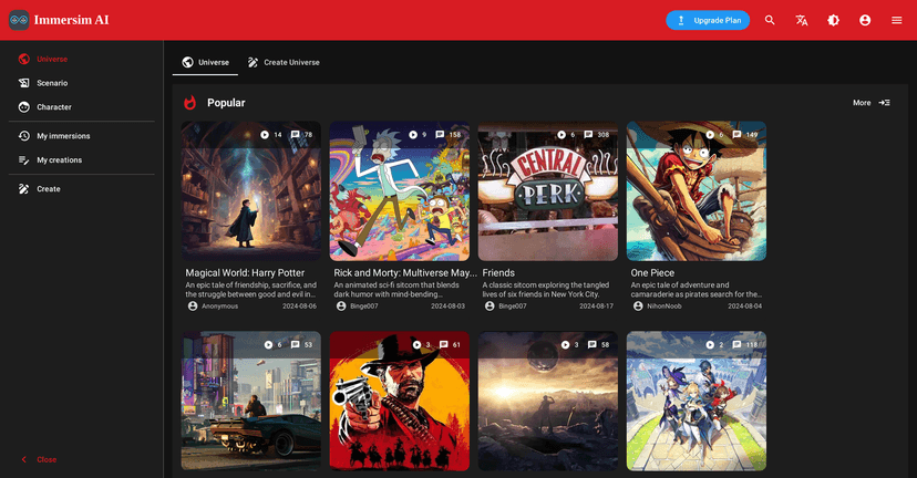 Immersim AI stands out as a versatile role-play platform where creativity knows no bounds. Whether you want to engage in a medieval fantasy, a thrilling sci-fi adventure, or even a simple slice-of-life story, Immersim AI is here to assist you every step of the way. The chat-driven interactions immerse you deeply in your chosen scenarios, making the adventures feel truly alive. As you interact with various characters and stories, the platform adapts to your choices, enhancing the overall experience. With Immersim AI, collaboration becomes easy, allowing you to embark on interactive experiences with friends or fellow role-playing enthusiasts.