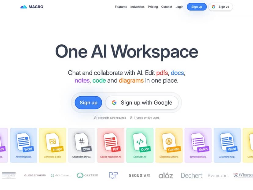 After trying Macro for a few weeks, I can honestly say it’s a game-changer for document-heavy tasks. Its interface is straightforward, making it easy to organize and access PDFs, notes, and code snippets without switching apps. The AI chat functions smoothly, pulling insights from multiple models, which helps me get quick answers and summaries. The PDF reader is especially impressive—speed-reading and interacting with large documents became much faster. The collaborative canvas feature also stood out, allowing me to sketch ideas with colleagues seamlessly. The only downside I experienced was some limitations in the free plan, which restricts the number of documents you can manage, but the paid versions unlock all features effortlessly. Overall, Macro feels like a versatile workspace that adapts to various tasks, making me more productive.