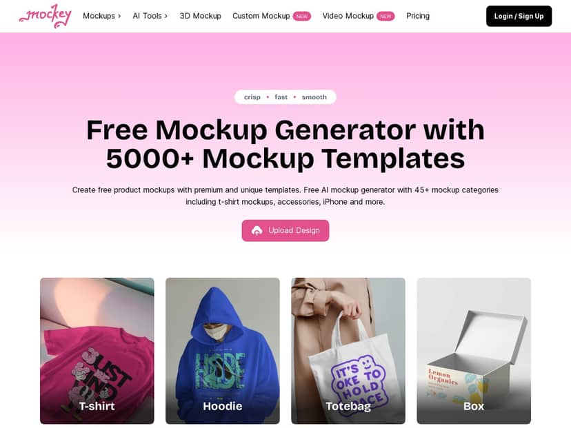 I recently tried Mockey, and I must say, I was genuinely impressed by how straightforward and accessible it is. Uploading my designs was a breeze with its drag-and-drop feature, and I loved browsing through thousands of templates for different products. The quality of the mockups looked professional, perfect for showcasing my apparel and accessories. I also appreciated how fast I could customize colors and backgrounds, making each mockup feel tailor-made. It’s not as detailed as Photoshop, but for quick, high-quality mockups, it’s fantastic. Plus, I could download everything without watermarks—huge win for free usage!