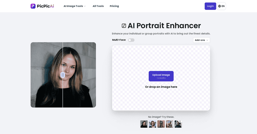 One of the remarkable qualities of PicPicAI is its ability to support multi-face images. Whether you have a family photo or a group shot, you can enhance all the faces simultaneously, saving you time and effort. Users can either upload images or simply drag and drop them into the tool — it really couldn’t be easier. Additionally, PicPicAI features useful add-ons like a Background Remover and Colorize Photos, which offers further versatility in the editing process, letting you play around with your portraits more extensively.