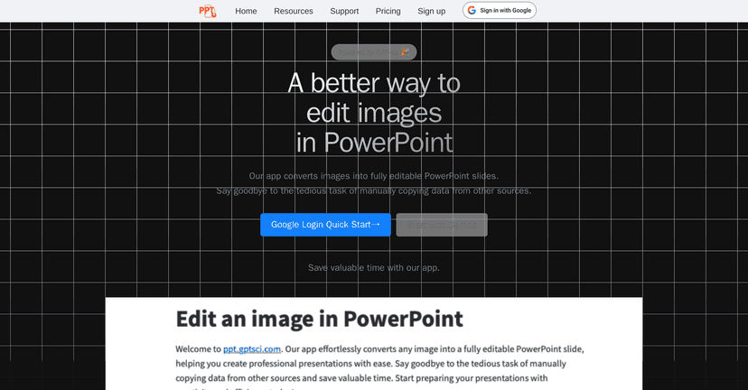 PPT GPTSci Review focuses on Edit in PPT, an application designed to transform images into editable PowerPoint slides effortlessly. Powered by advanced GPT-4o technology, this tool eliminates the tedious process of manual data entry and slide creation, allowing users to produce quality presentations in record time. Whether you’re a student, professional, or someone who frequently makes presentations, this tool could be a game changer.