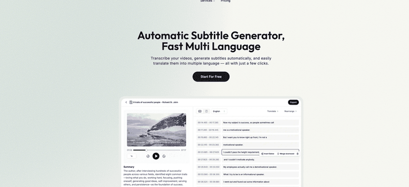 SubtitleGen is an automated subtitle generator that stands out for its ease of use and powerful capabilities. Within minutes, you can convert audio to text, create accurate subtitles, and even translate them into various languages. This cloud-based platform ensures you can access it from any device without any software installation. Whether you’re a content creator, educator, or anyone producing video content, SubtitleGen makes adding subtitles a breeze, allowing you to increase engagement and accessibility.