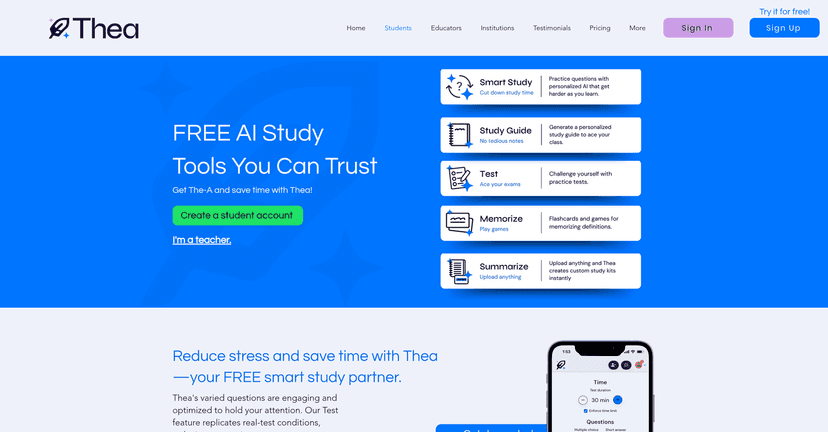 Thea is an impressive learning platform that personalizes your study experience by converting course materials into customized study kits. Whether you’re working with handwritten notes, PDFs, or lecture videos, Thea makes it seamless. Plus, it utilizes powerful techniques like active recall and spaced repetition to make sure you’re not just memorizing, but really understanding the material. The multilingual support adds another layer of accessibility, allowing users from various backgrounds to make the most out of their studies. With a user-friendly interface, Thea puts everything you need at your fingertips, no matter where you are.