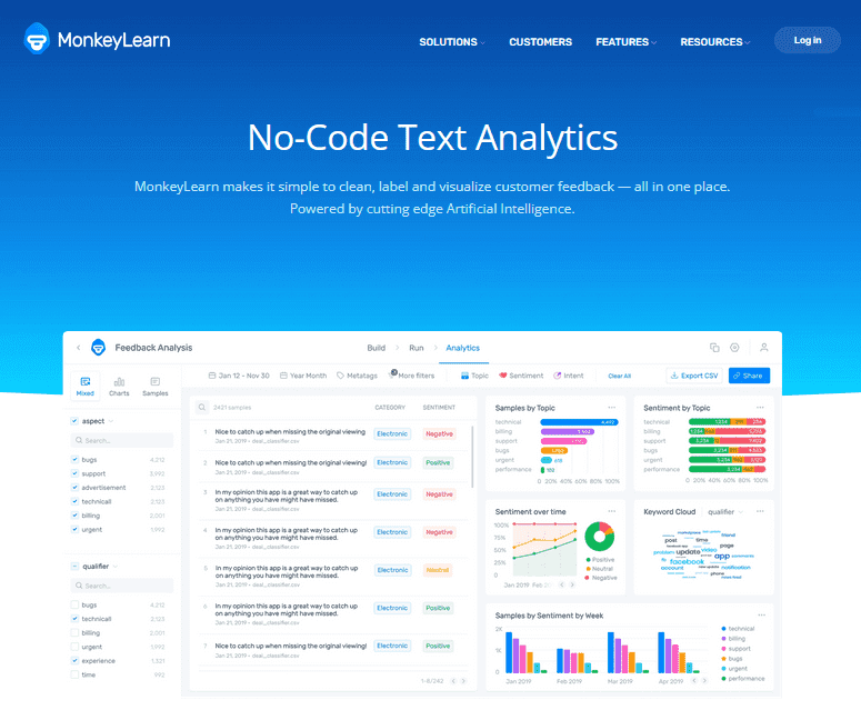 MonkeyLearn is at the forefront of transforming unstructured text data into actionable insights using machine learning. Whether it’s parsing through emails, dissecting tweets, or analyzing survey responses, MonkeyLearn ensures businesses can harness the true power of their textual data.