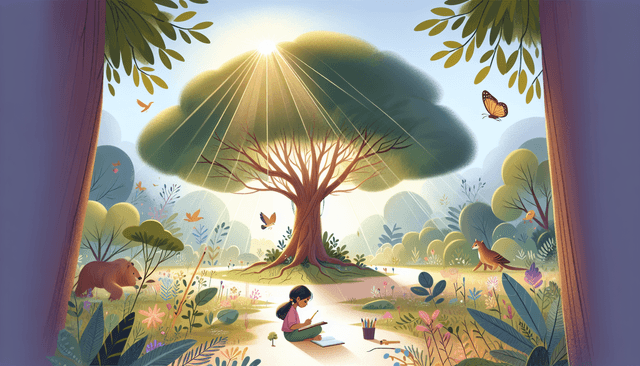 Encourage them to include vivid details like the sounds of nature, the smell of flowers, or the feel of the grass beneath their feet.