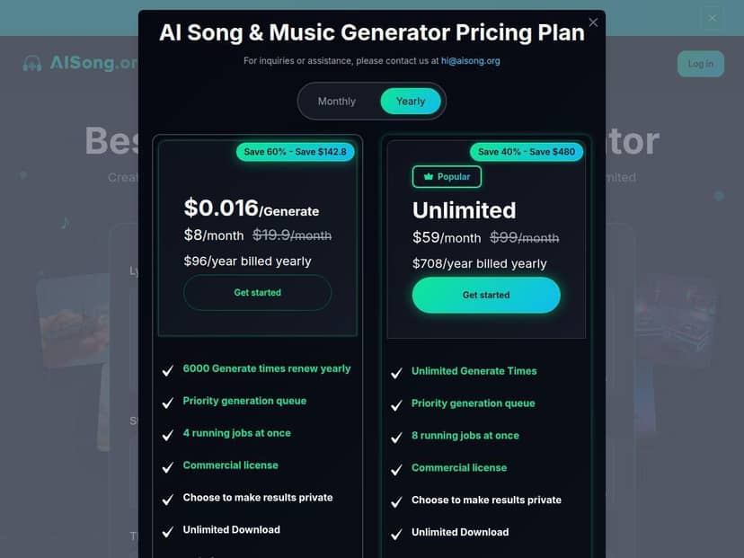 AI Song offers a free version with basic features to get started. For more advanced tools and unlimited creation, premium plans are available, though specific pricing details can be found on their website. Most users find the free version sufficient for testing, with paid plans offering enhanced options for professional needs.