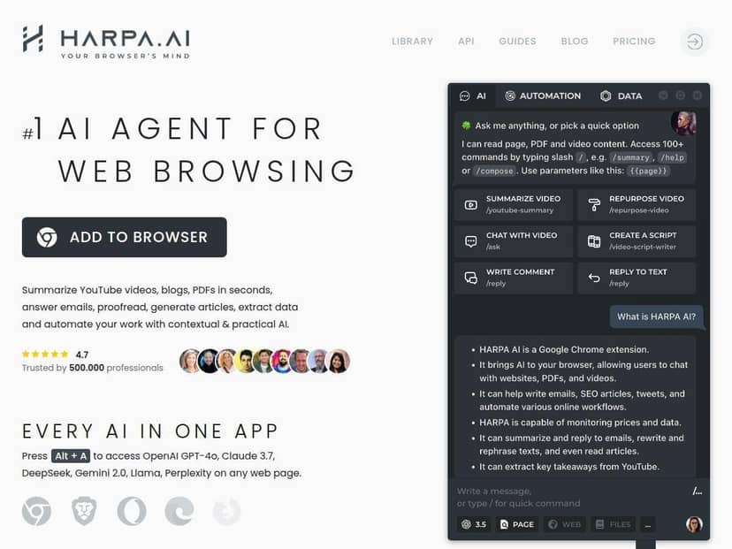 Overall, Harpa is a powerhouse for anyone who wants to supercharge their web browsing and online productivity. It’s especially useful for professionals, content creators, and developers who need quick, automated access to information. While it has some minor limitations, the combination of multiple AI models and automation features makes it a valuable tool worth exploring. If you’re ready to streamline your online tasks, Harpa could be your new digital assistant.