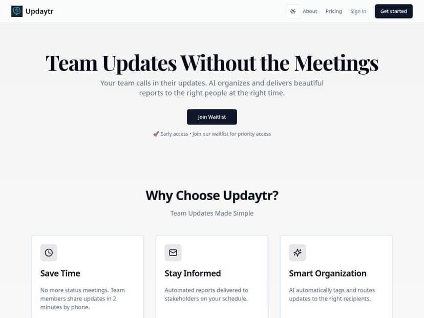 Looking for an easy way to capture and share information hands-free? Updaytr promises to make your communication effortless and more organized. With its voice-based AI service, you can record updates, ideas, or stories simply by making a call. As someone who tested it, I was eager to see if it truly lives up to the hype. Let’s dive into a detailed review to find out how Updaytr might fit into your daily workflow.